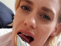 Blonde Chikita shows off her big boobs and bush
