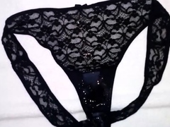 Huge load of cum on my sister's dirty panties (18 spurts)