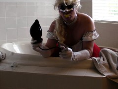 Lingerie tgirl toying ass and masturbating